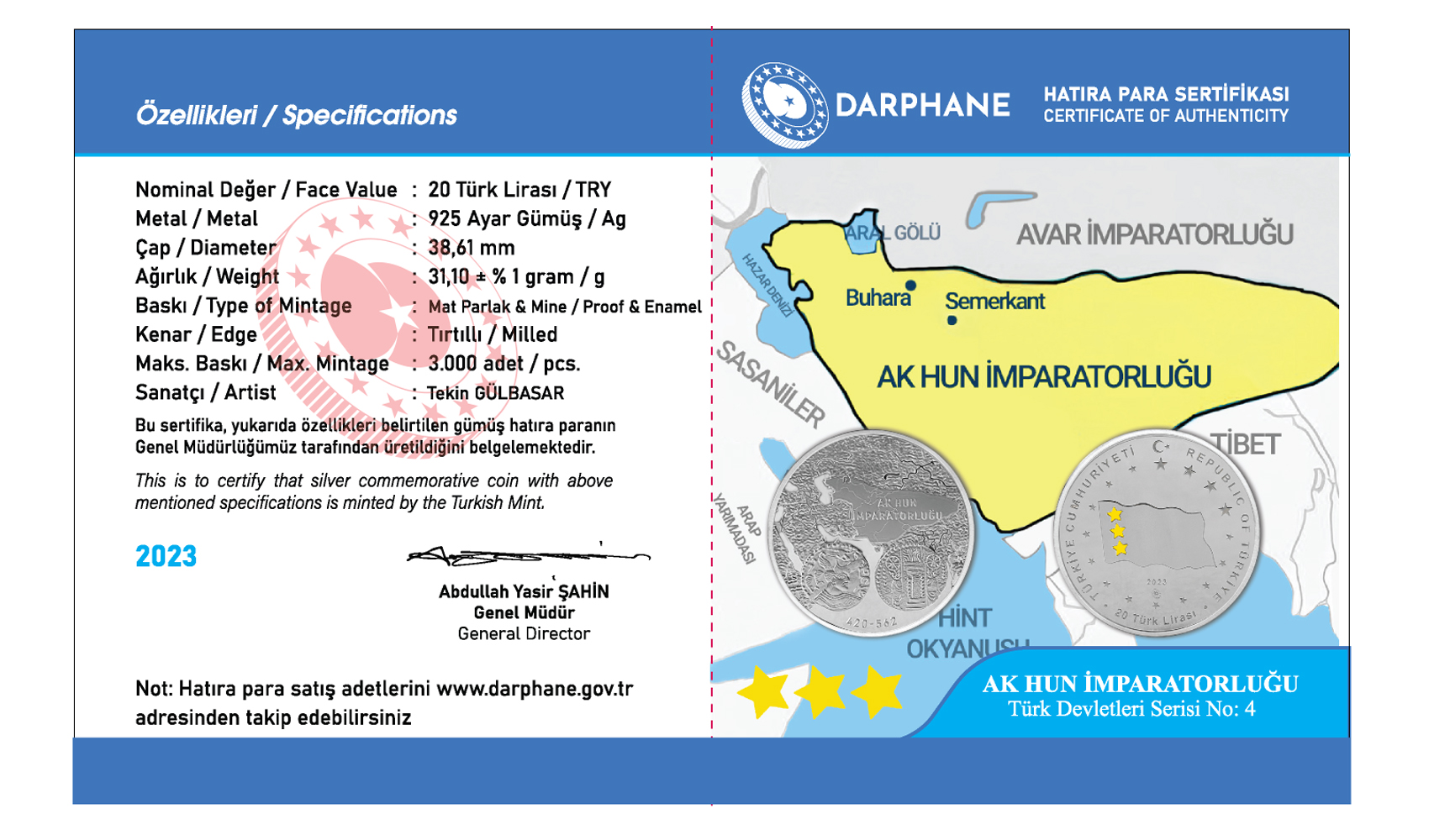 Ak Hun Devleti - Türk Devletleri Serisi No:4 Hatıra Parası Gümüş