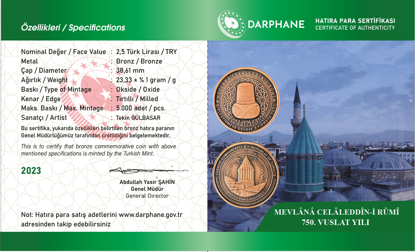 Mevlana Celaleddin-i Rumi 750.Vuslat Yılı Bronz Hatıra Parası