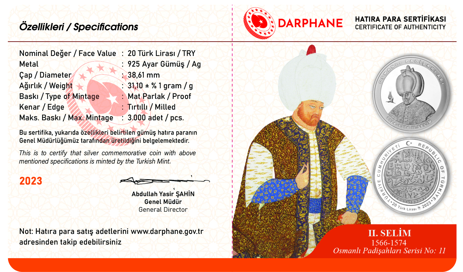 II.Selim Osmanlı Padişahları Serisi No:11 Gümüş Hatıra Para